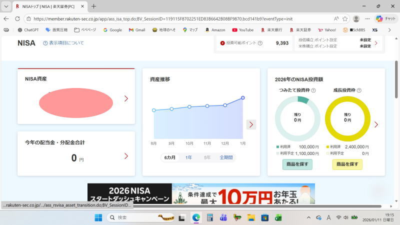 今年も成長投資枠は一括で、積み立ては月10万x12